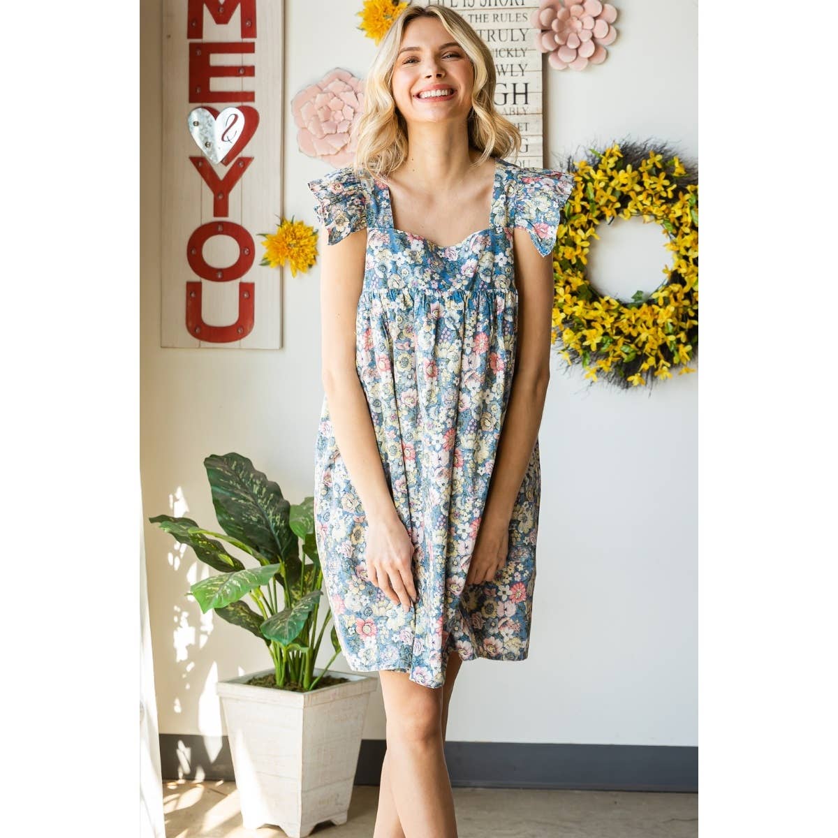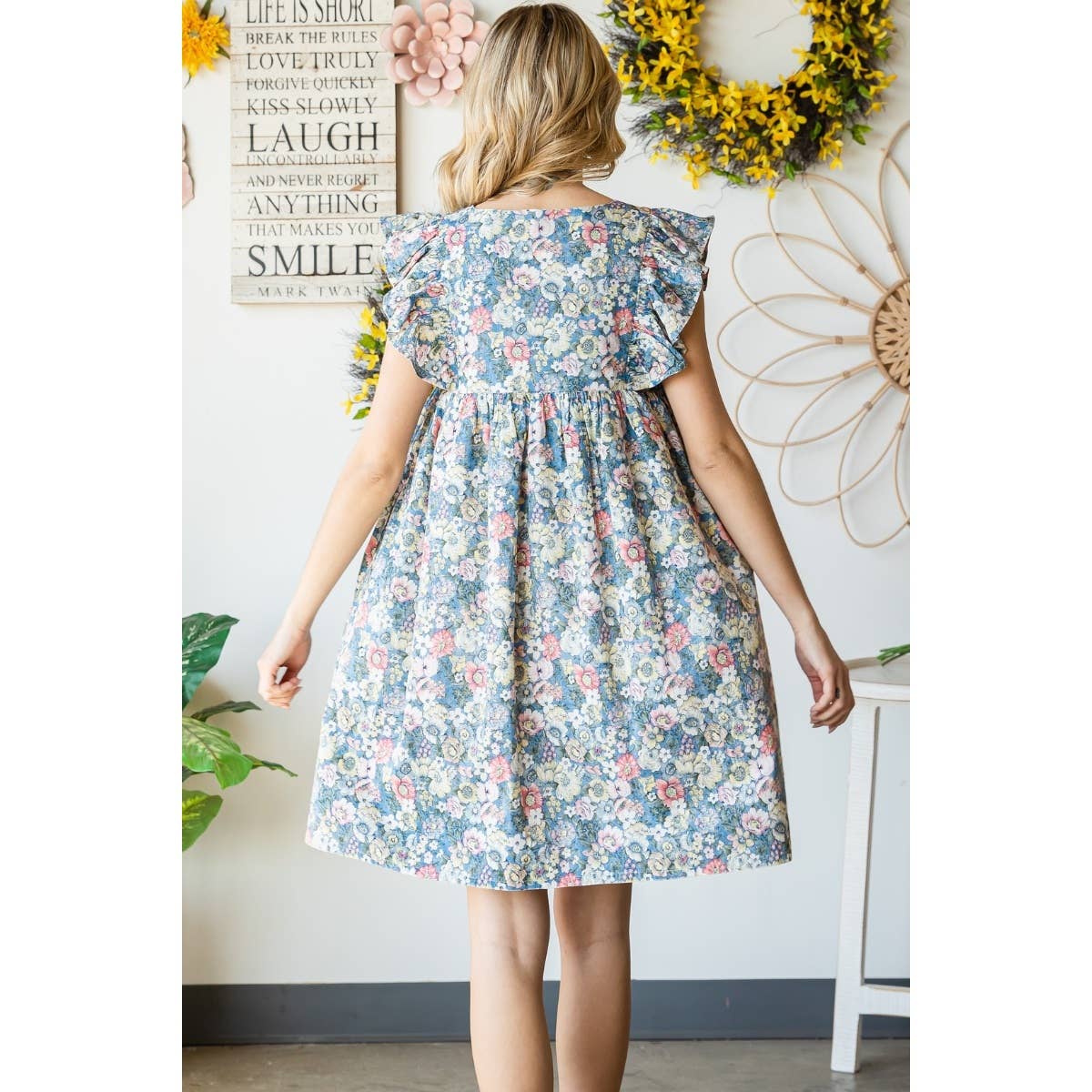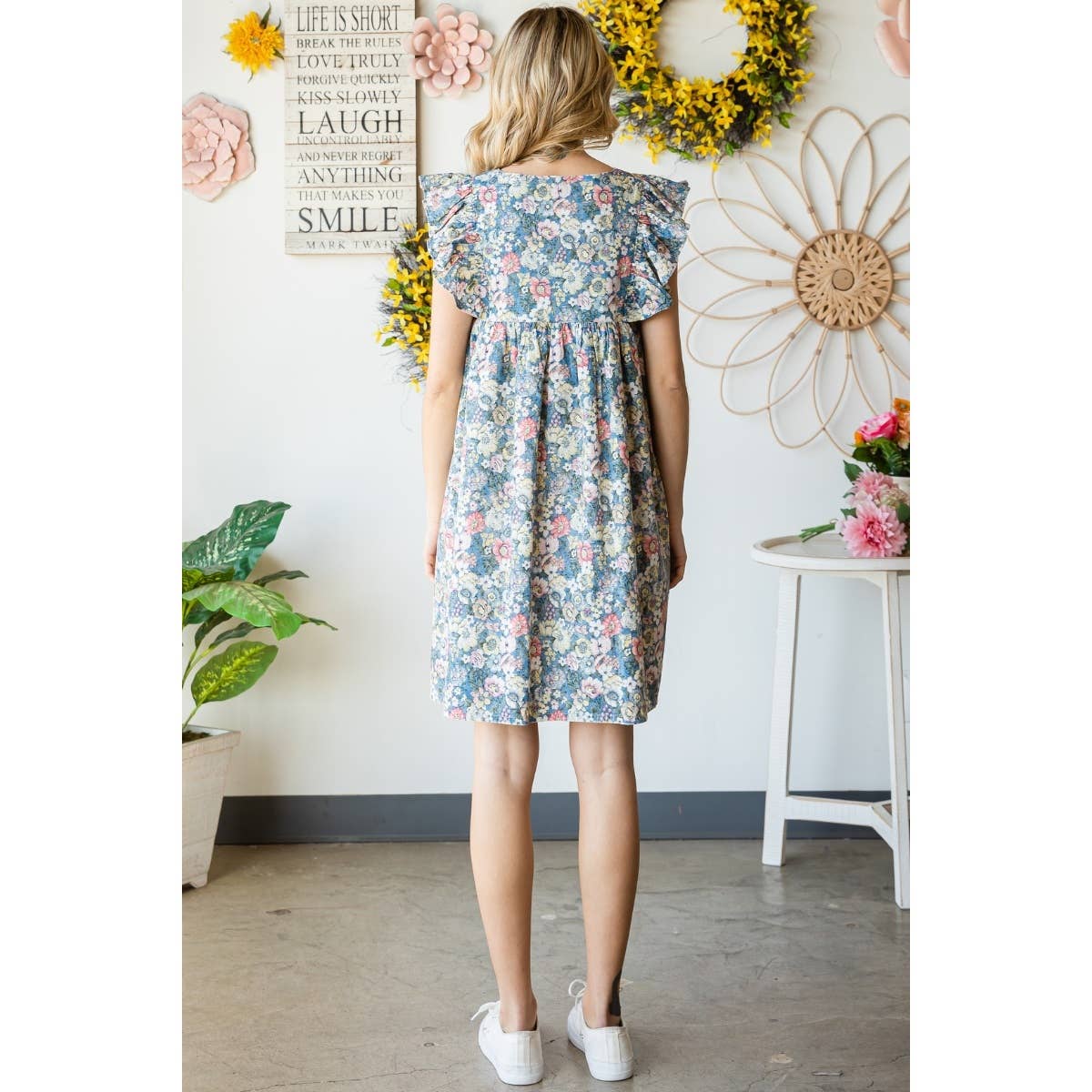 Garden Flower Print Ruffle Sleeve Mini Dress