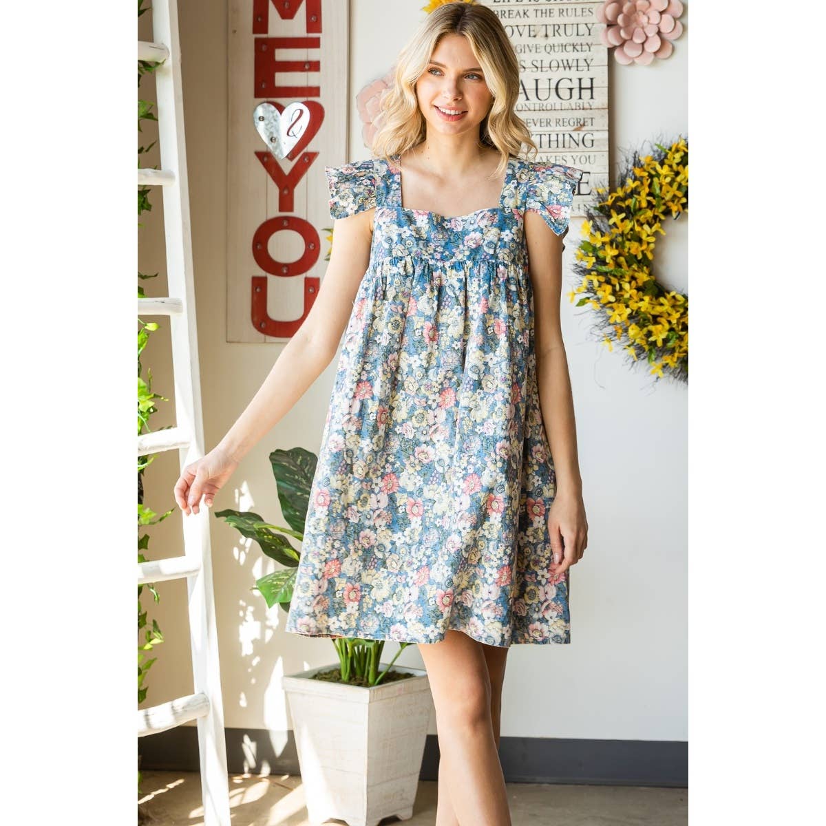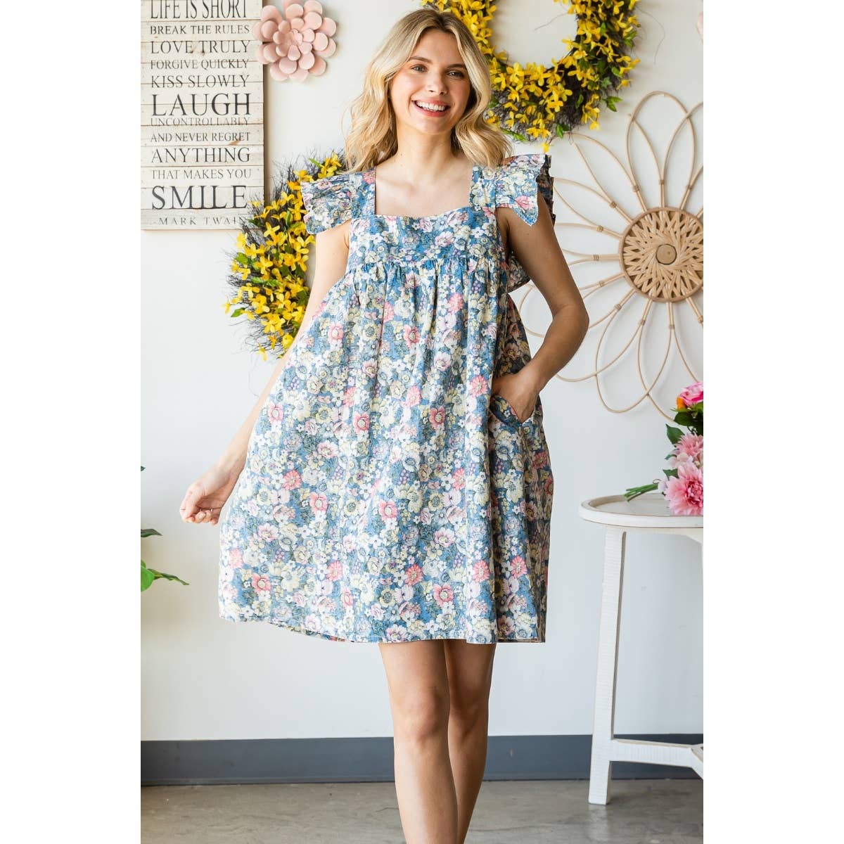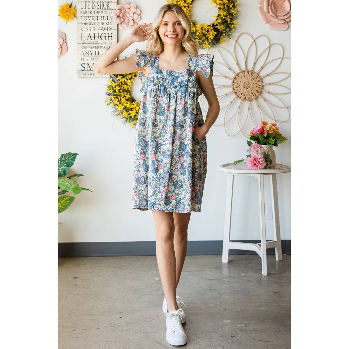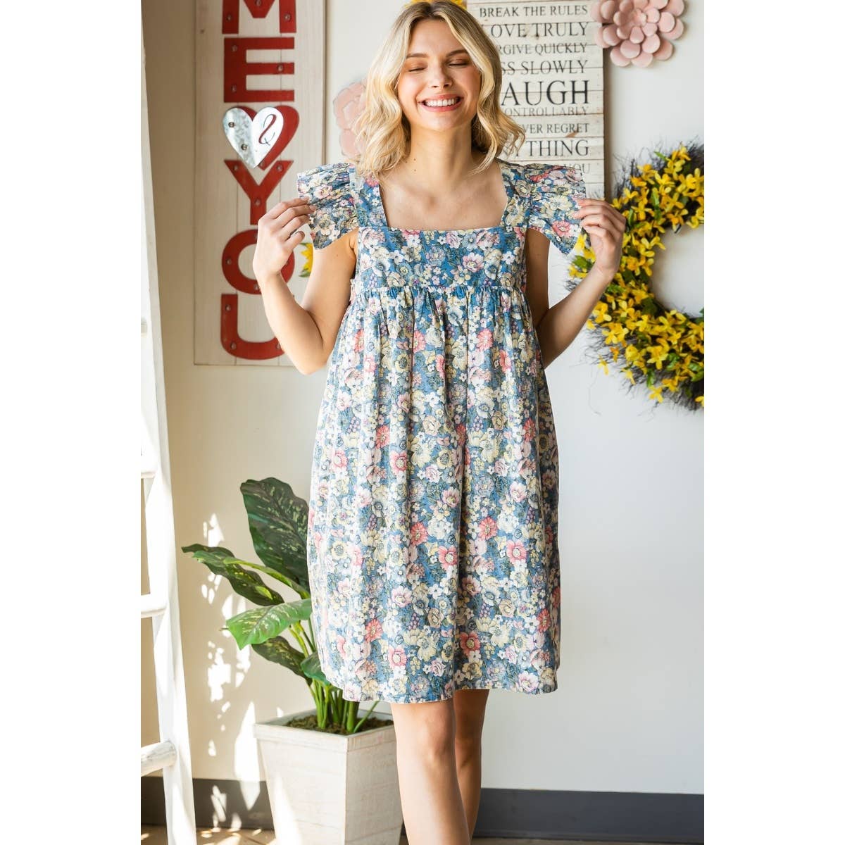 Garden Flower Print Ruffle Sleeve Mini Dress