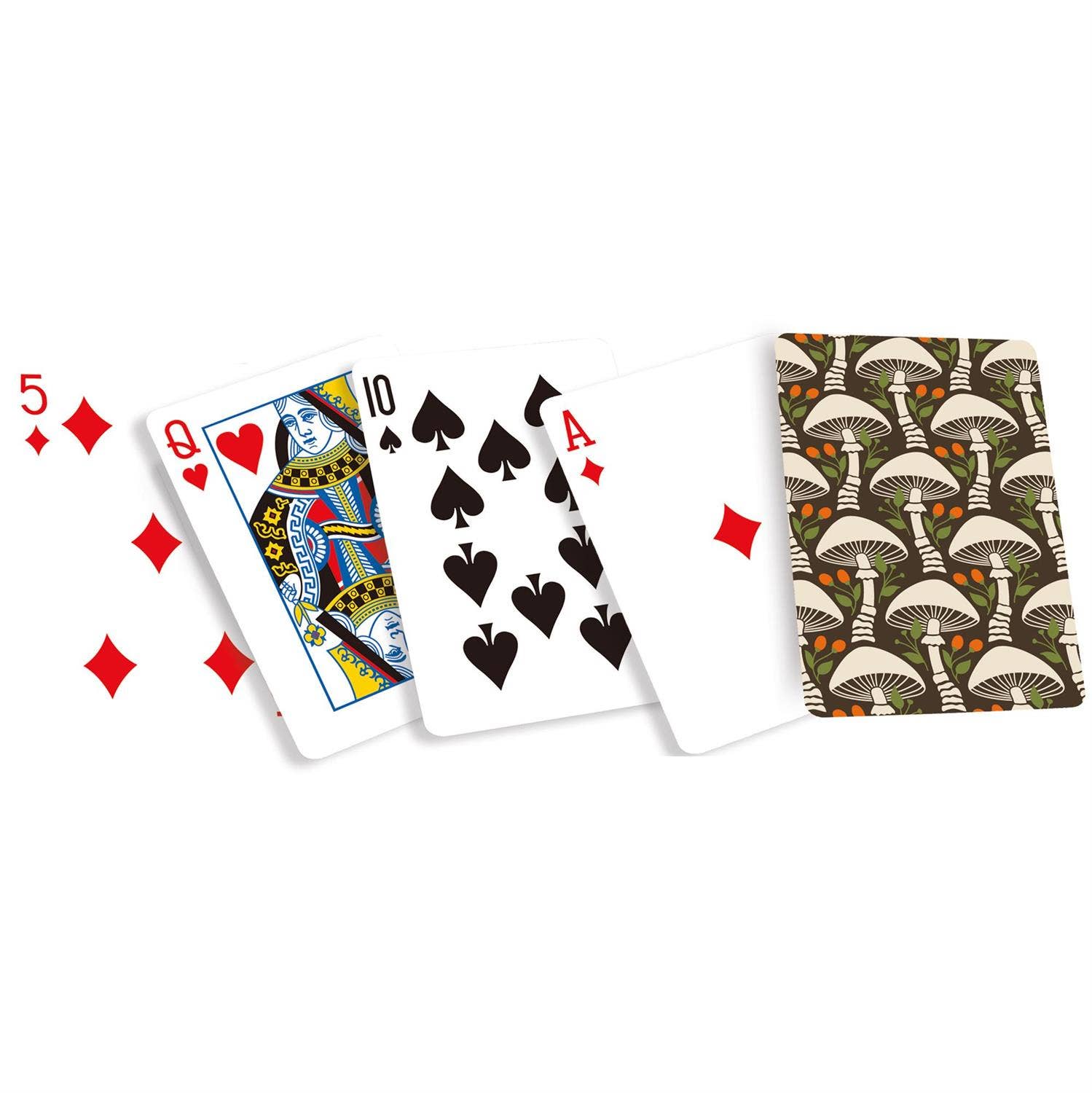 Distract friends from what you're holding in your hand with unique eye-catching patterns on infinitely usable playing cards. This chill 54-card playing deck displays a relaxing mushroom pattern on the back of each card for a down-to-earth take on standard playing cards. Questionables playing cards are packaged in a protective acrylic case for easy storage when not in use or traveling. Our Mushrooms playing cards are designed to maximize chill when hanging out with friends and family making them perfect for gifting or on-the-go boredom.
